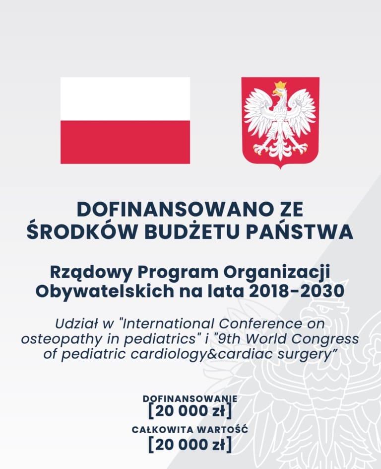 W ramach projektu przedstawiciele Fundacji wzięli udział w dwóch prestiżowych wydarzeniach międzynarodowych – konferencji osteopatii pediatrycznej w Berlinie oraz światowym kongresie kardiologii i kardiochirurgii dziecięcej w Hongkongu. Zdobyta wiedza i doświadczenie zostaną wykorzystane w codziennej praktyce medycznej, działalności edukacyjnej oraz przekazane studentom, specjalistom i rodzicom poprzez szkolenia, publikacje i działania informacyjne.