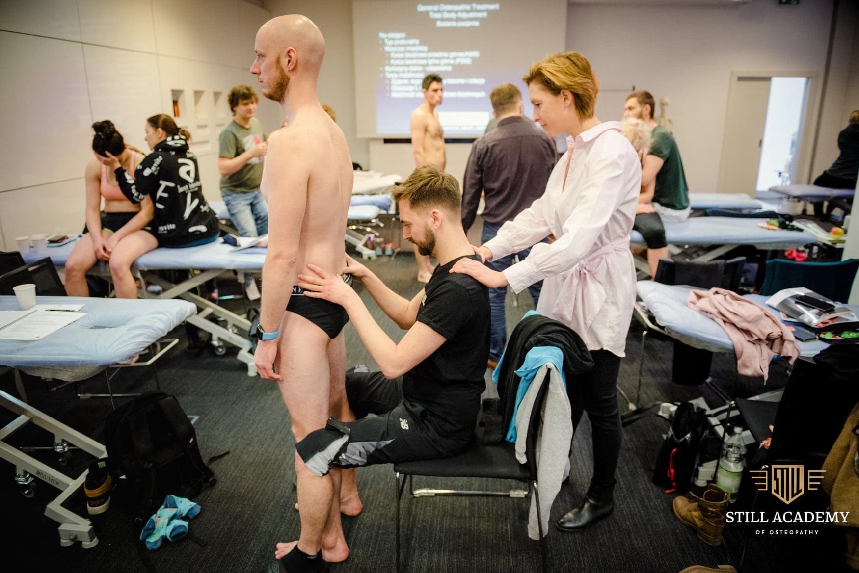 W weekend 12-14.03.2021, w roli asystenta pomagała studentom poznać zagadnienia Total Body Adjustment, które przedstawiał wykładowca Bartosz Szpot DO.
